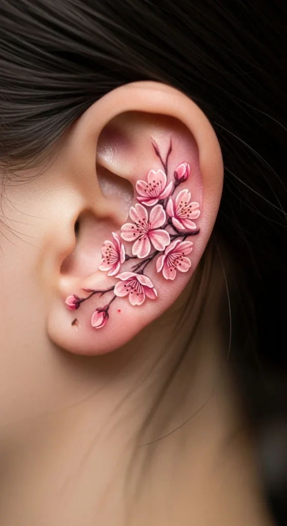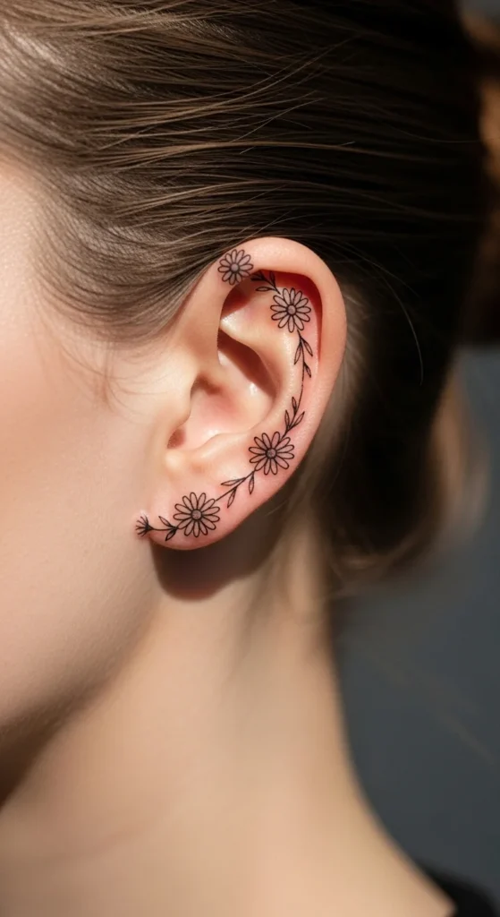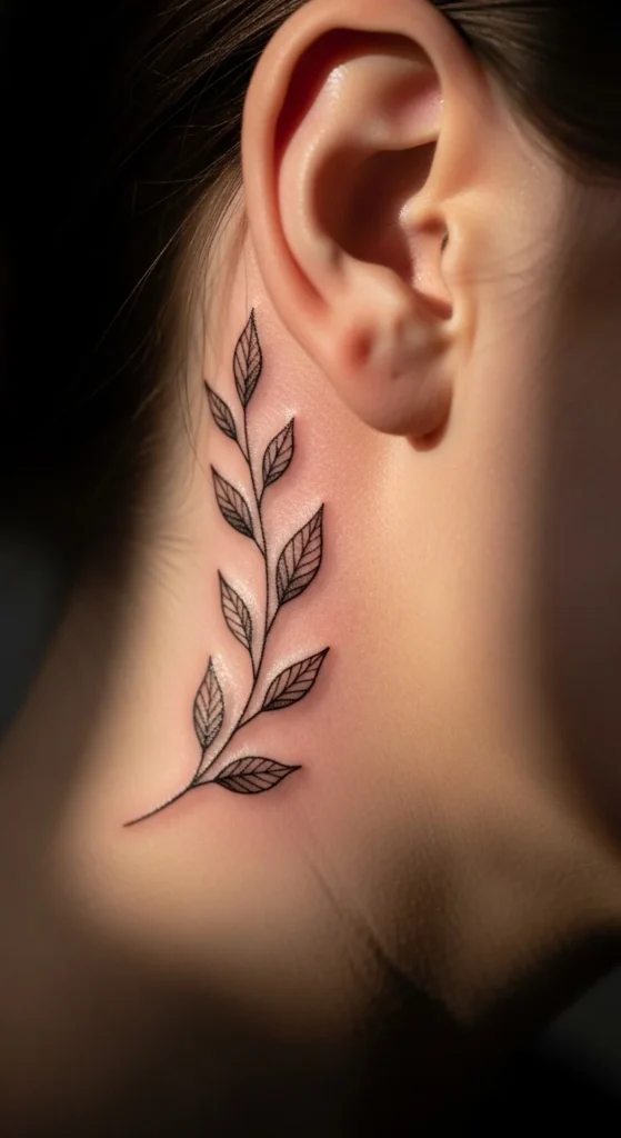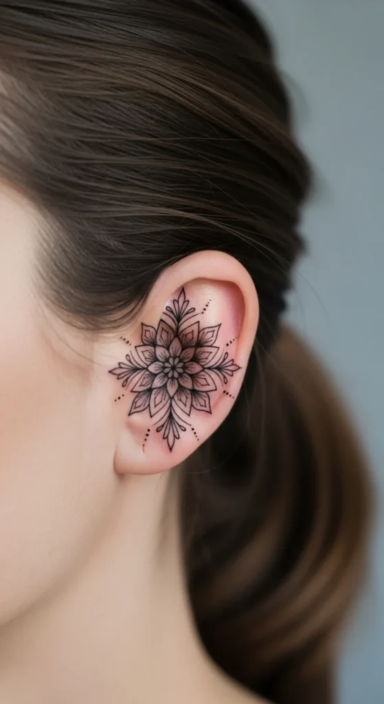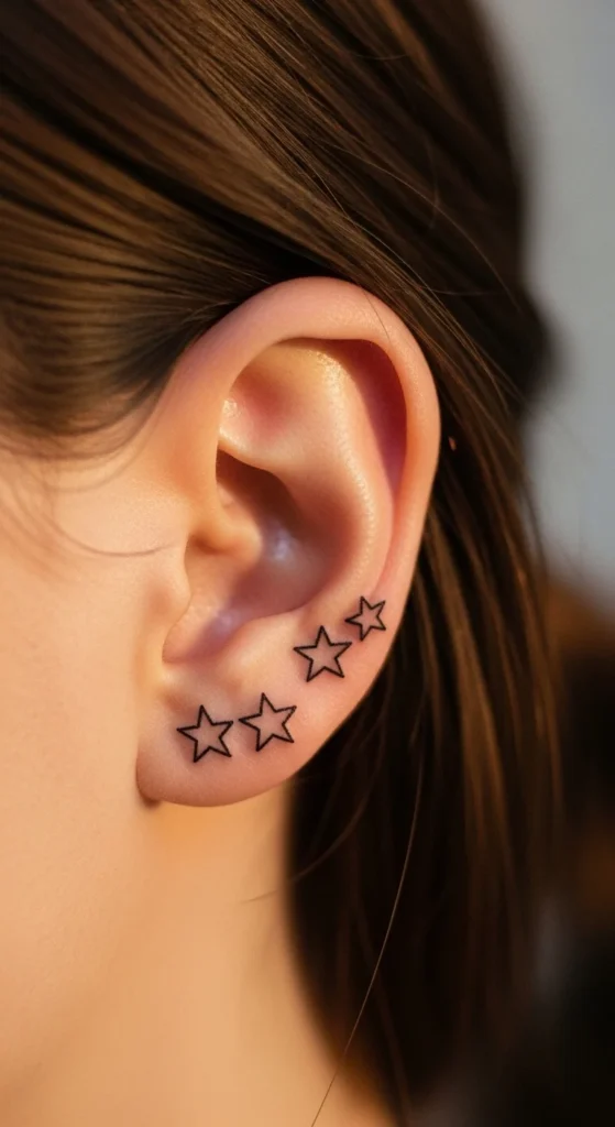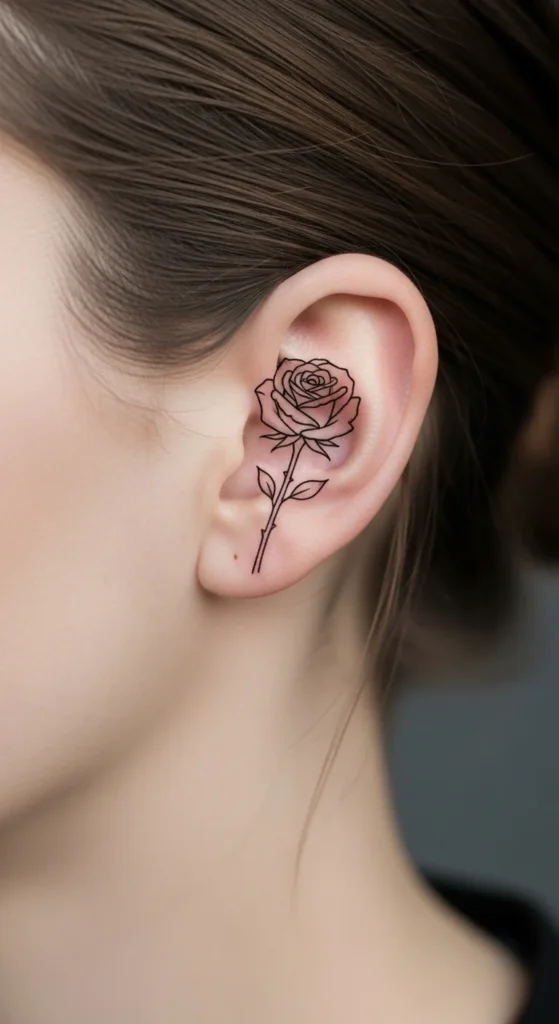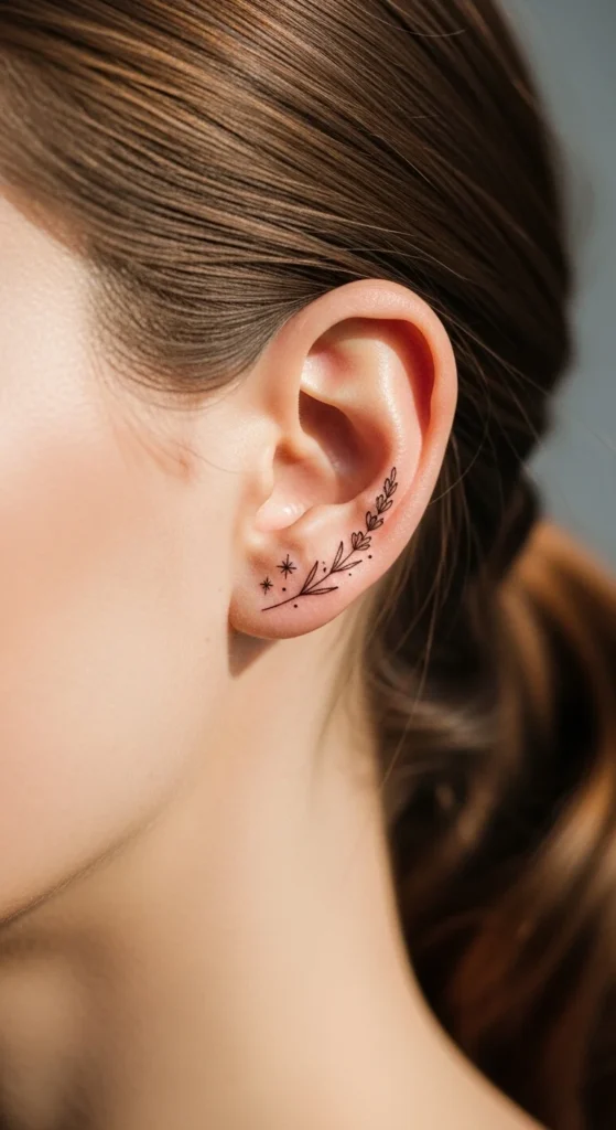 Behind-the-ear tattoos have become a favorite for women who want something small, elegant, and easy to hide. This placement feels personal. You can show it off with a simple hairstyle or keep it hidden under your hair. Most designs stay minimal—thin lines, tiny symbols, and soft shapes that don’t overpower the space.