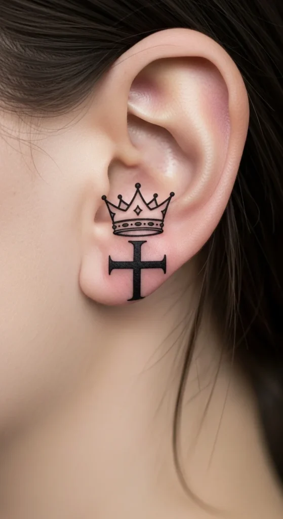 Behind-the-ear tattoos for men hit that sweet spot between bold and discreet. They stay small, but the meaning can be strong—faith, direction, power, or personal growth. This placement works well if you want something visible when styled but easy to hide for work.