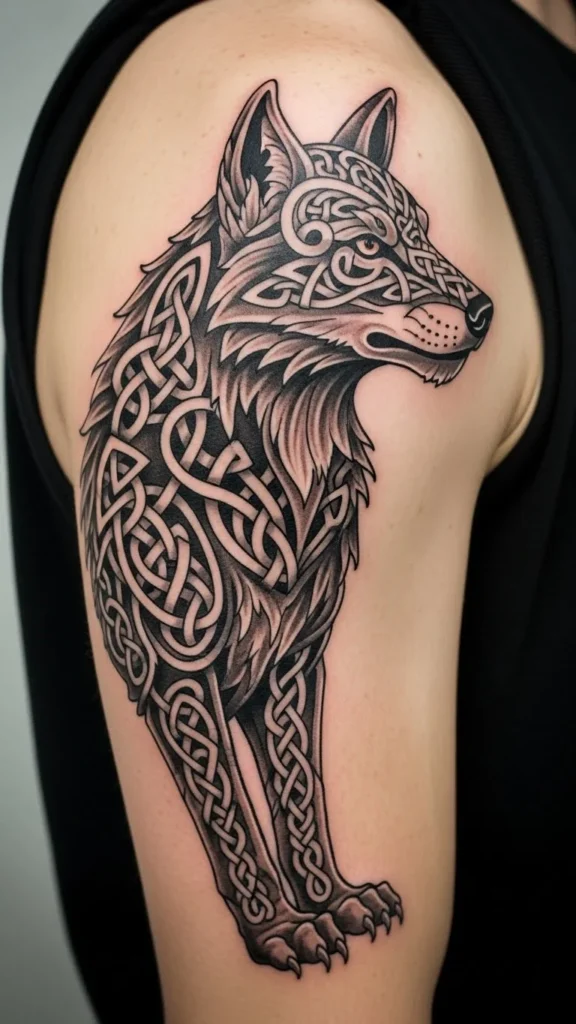 The wolf often reflects loyalty and instinct. Knot patterns avoid realism while keeping meaning clear.