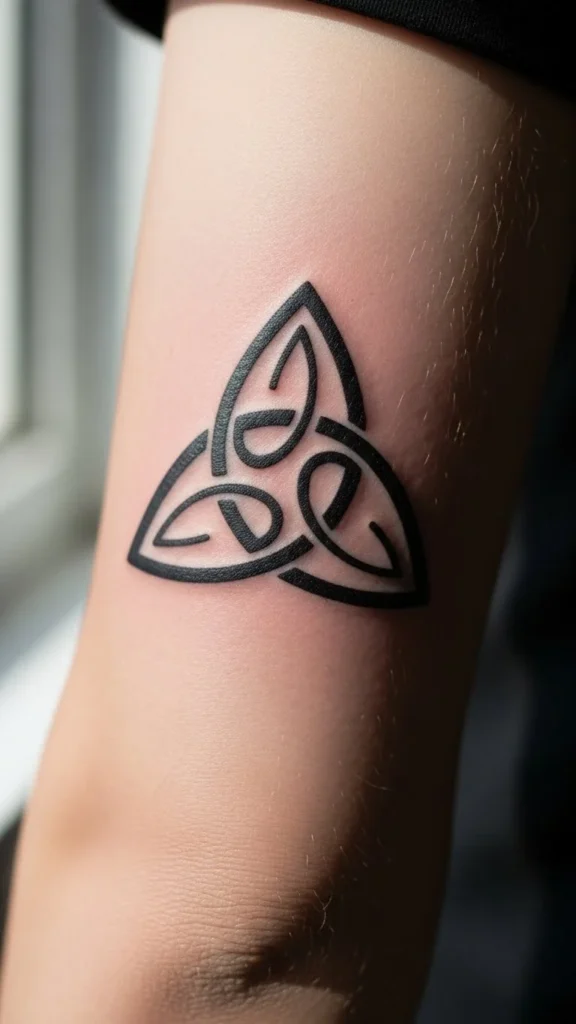 The triquetra uses three connected loops. Many see it as a symbol of balance, such as mind, body, and spirit, or past, present, and future. It carries meaning without feeling heavy.