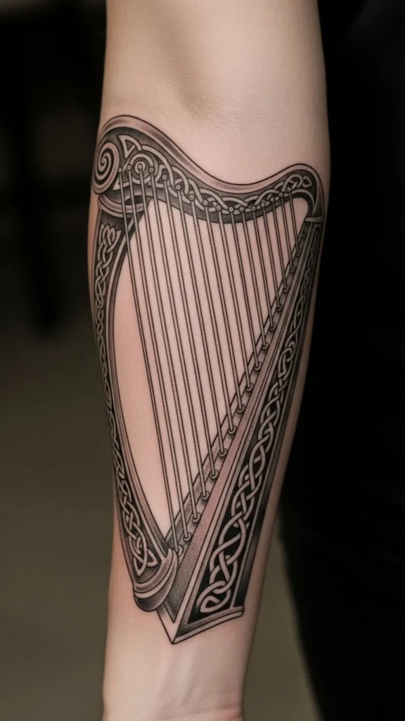 The harp connects to heritage and expression.