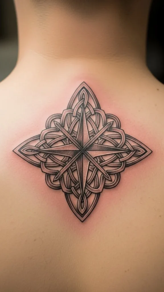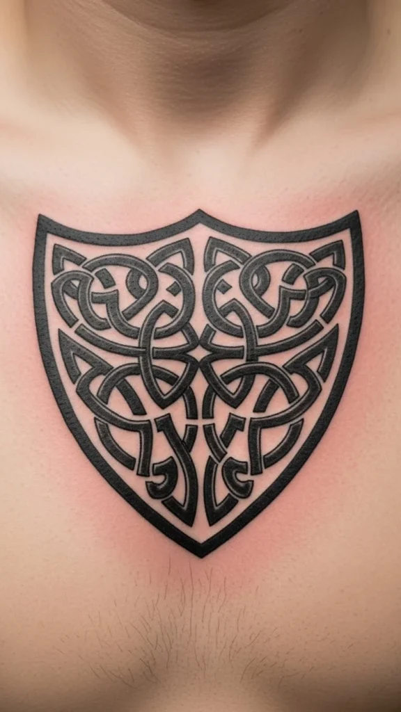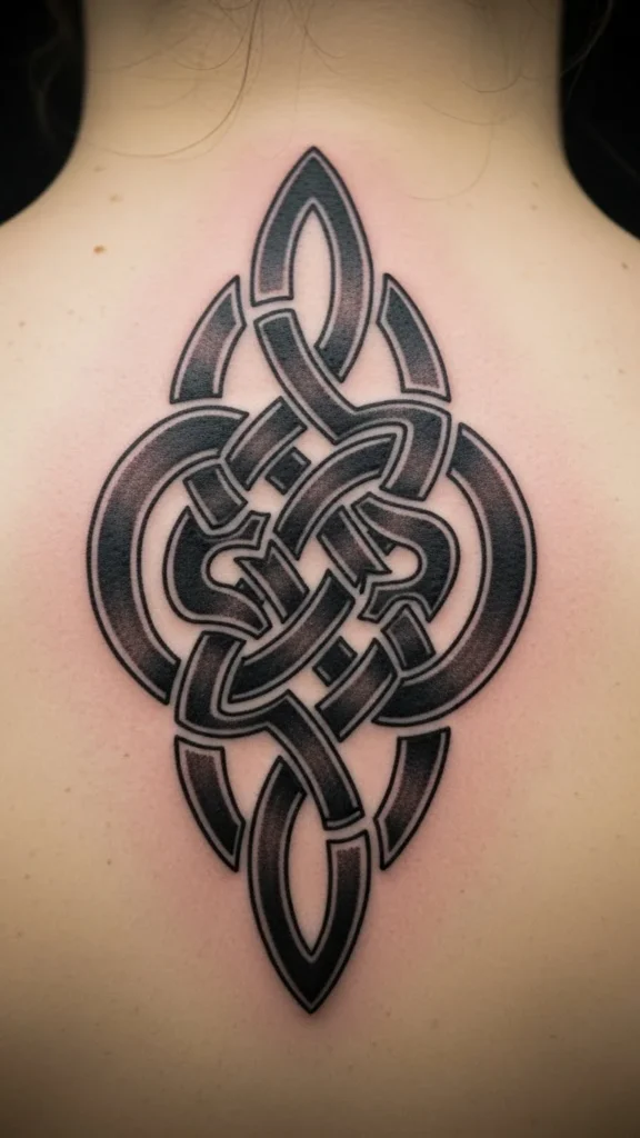 Medium size works best so details stay clear. Line-only versions cost less and heal faster. Dense knotwork can be skipped if you prefer a cleaner look.