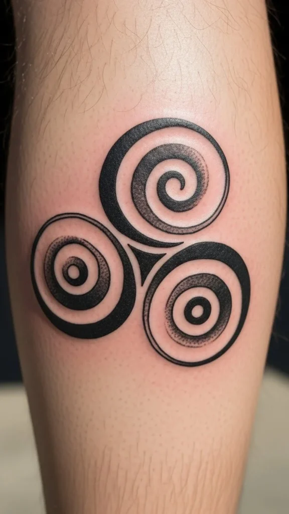 The triskelion features three spirals flowing from a central point. It often reflects motion, change, and personal direction. Many people choose it during new phases of life.