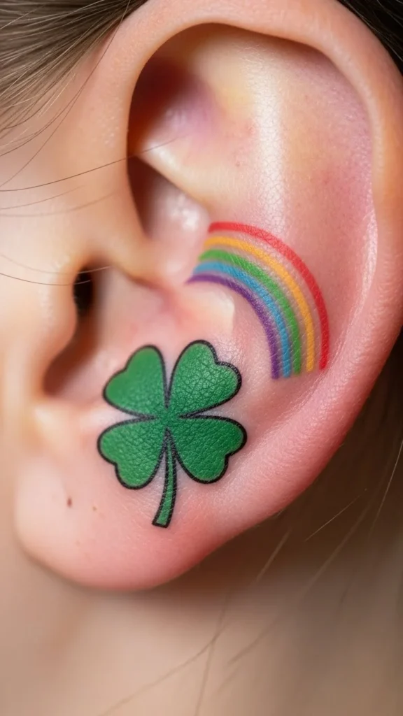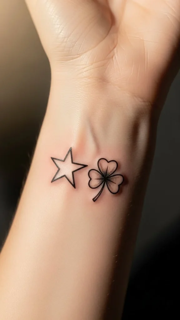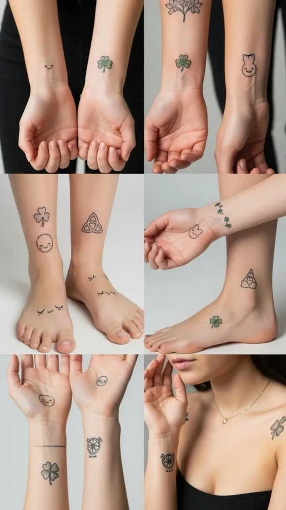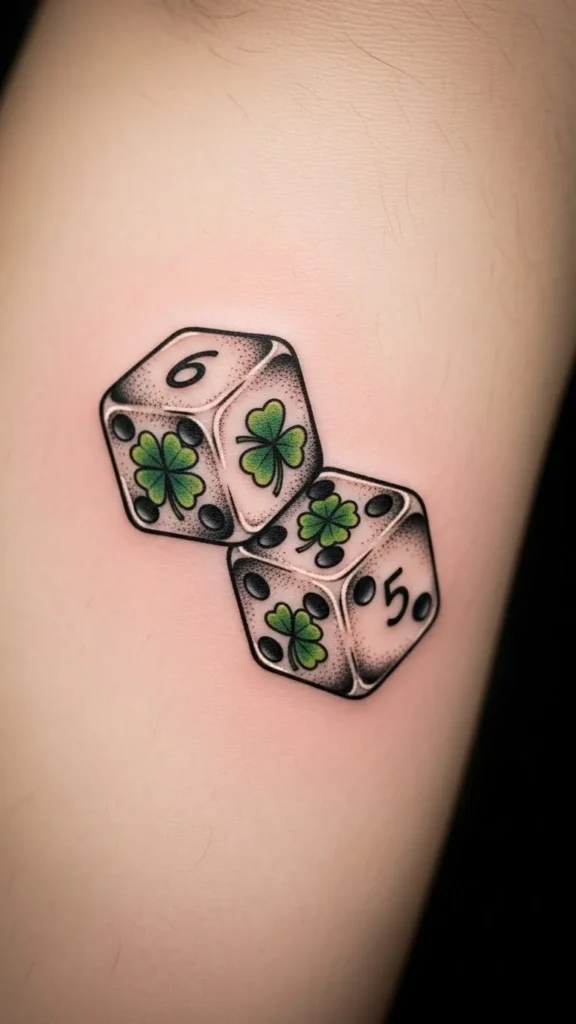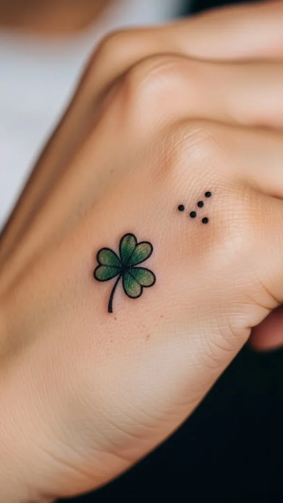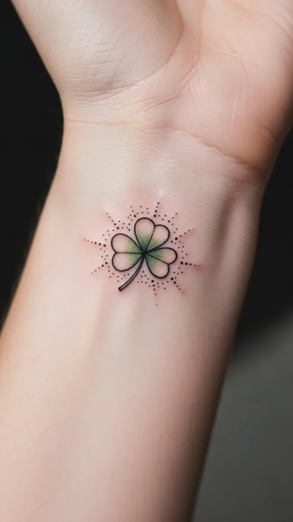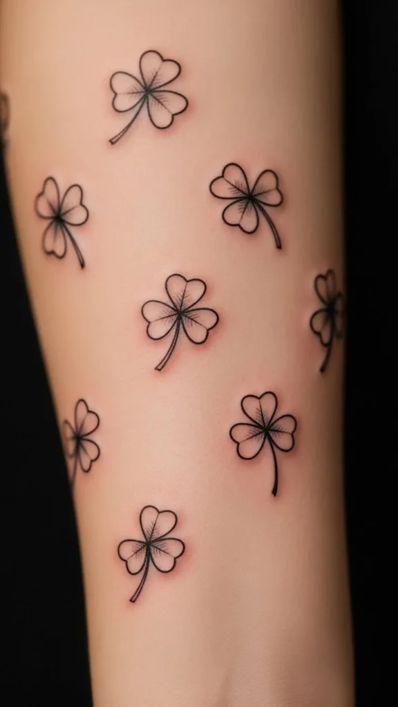 Scattered clovers feel joyful. Add them over time if you want. Each one tattoos quickly.