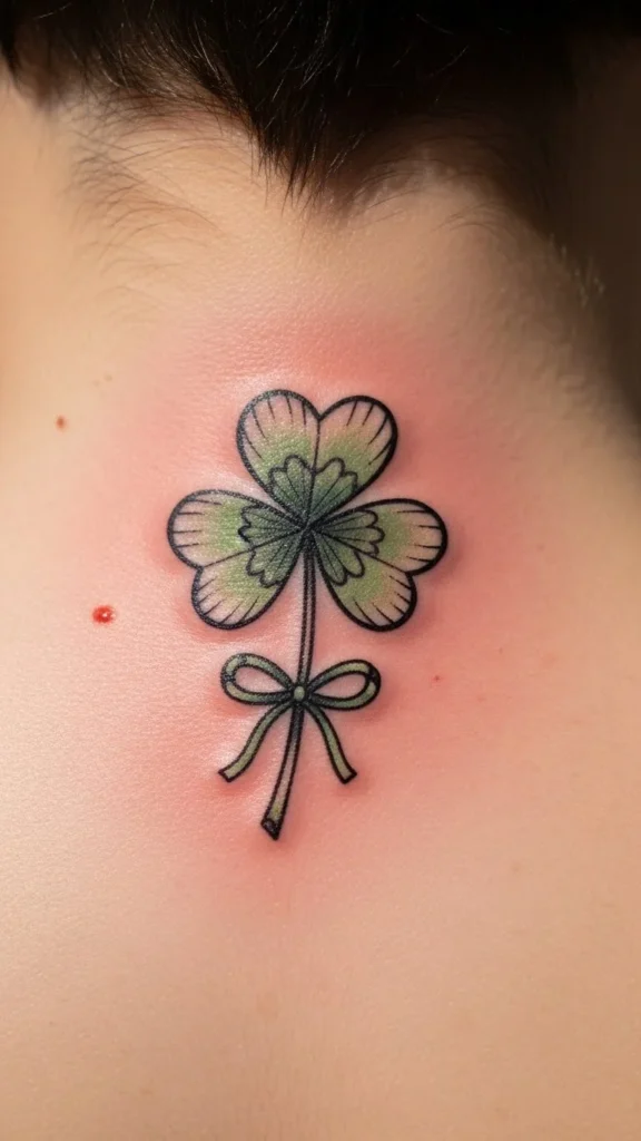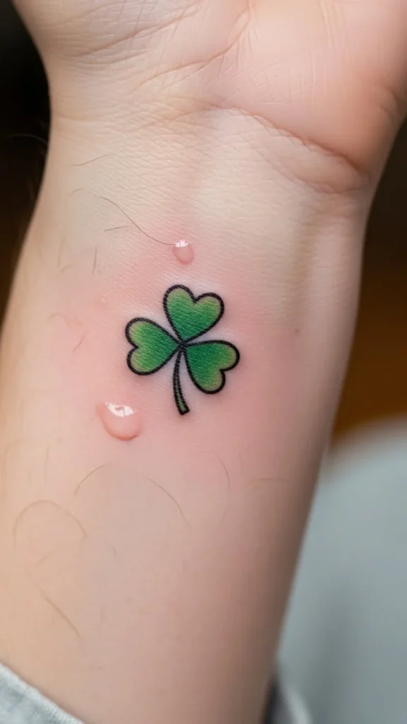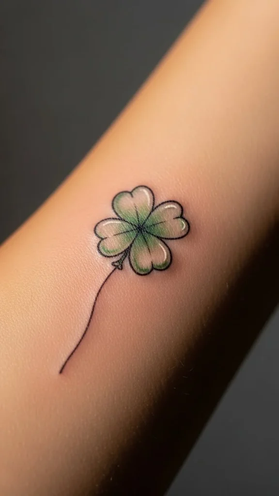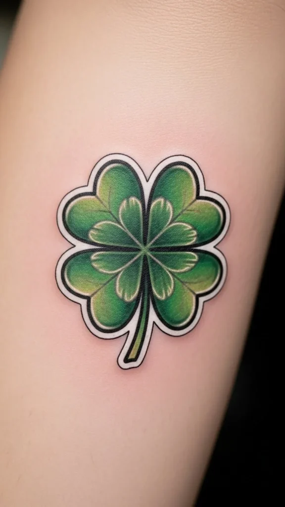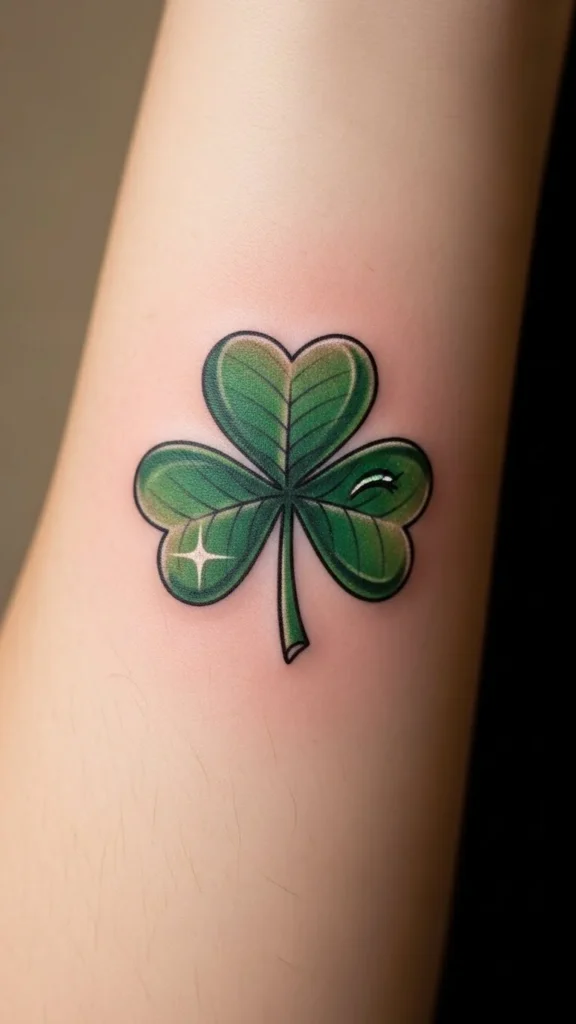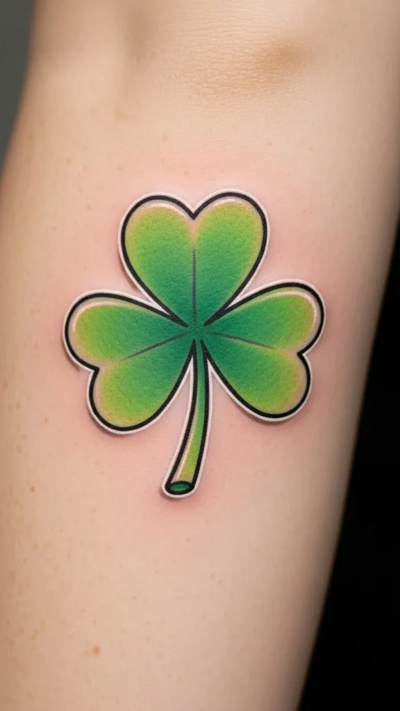 Cartoon shamrocks feel fun and relaxed. Smooth curves help with healing. Avoid sharp corners. Black ink keeps costs lower. Sketch a few cartoon versions at home to choose your favorite shape. This design fits well on forearms or shoulders.