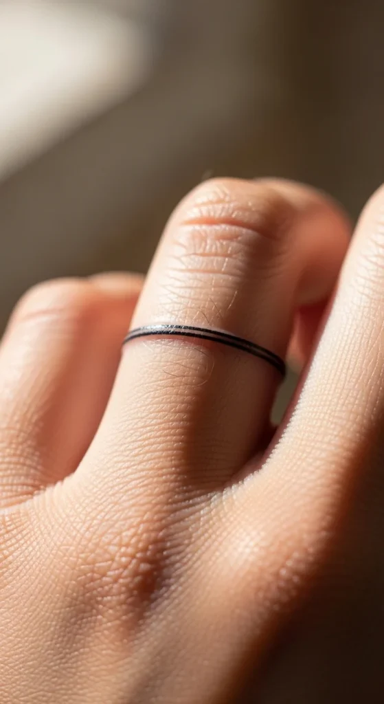 A thin band tattoo works as a jewelry alternative. Many couples love this option.