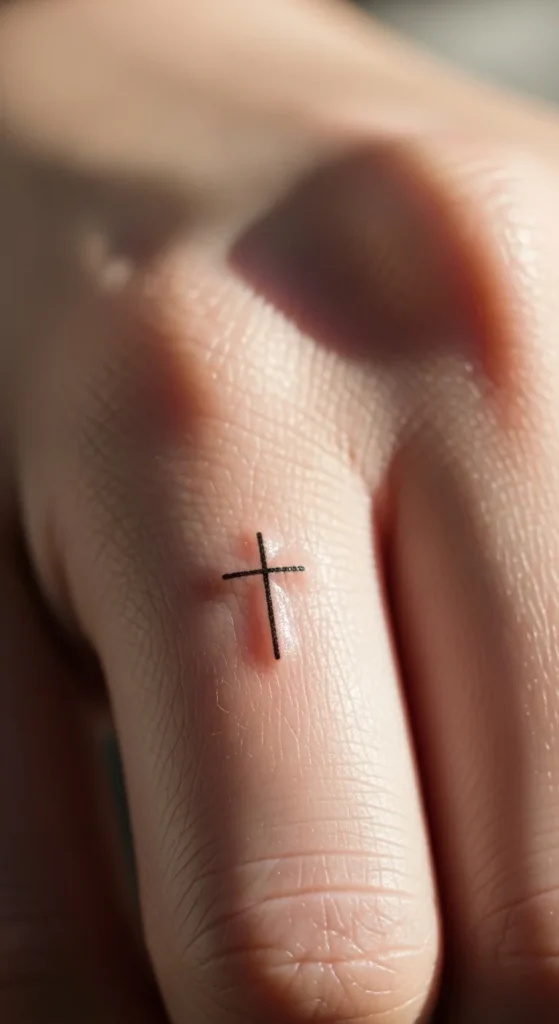 A cross symbolizes faith or spirituality. Minimal lines avoid smudging.