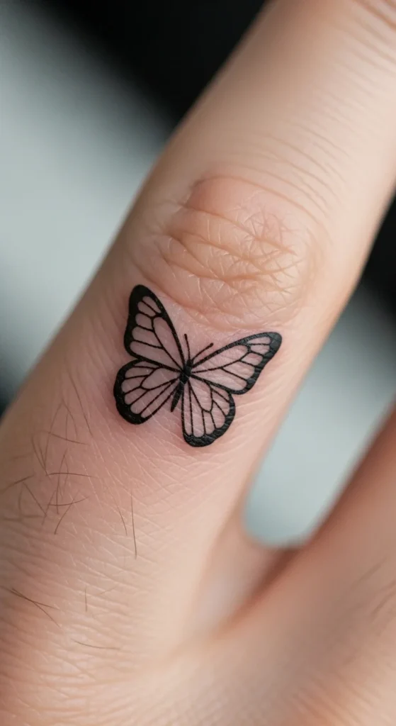 Butterflies represent transformation and grace. Keep wings minimal to avoid blurring.