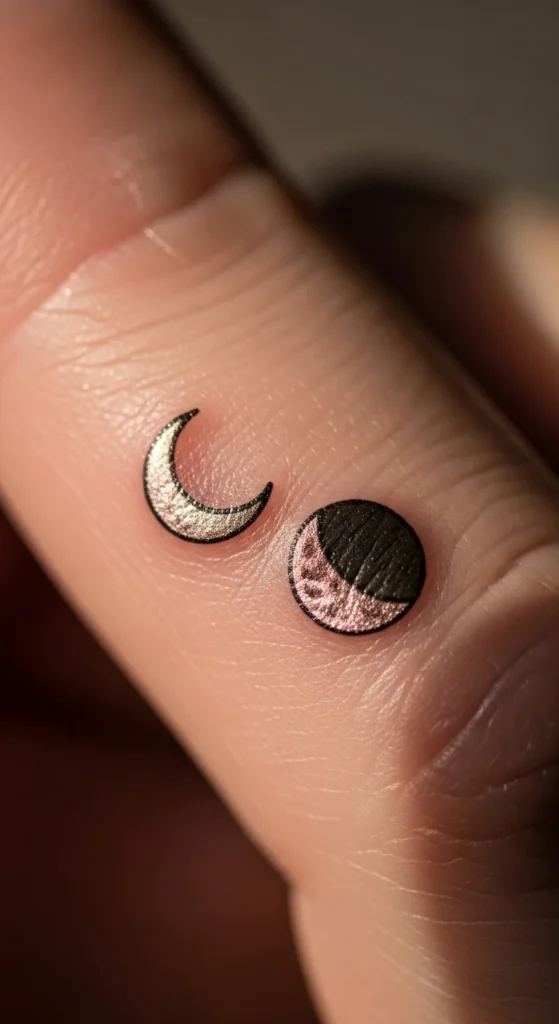 Moon phases signify cycles, empowerment, and growth. Keep symbols small and clean.