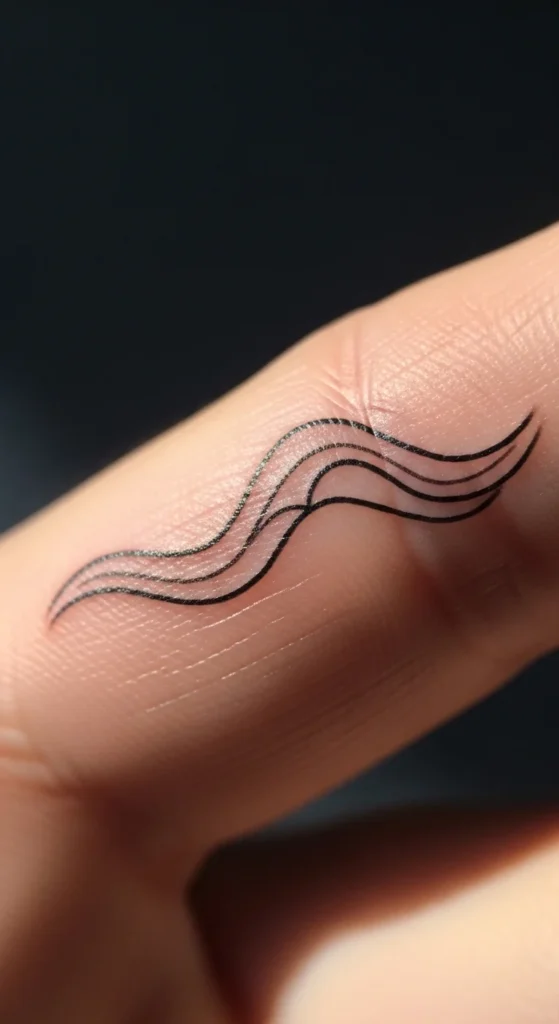 Side or base finger placement prevents early fading. Simple black lines make the tattoo affordable and durable. Temporary sketches help test size. Pair with dots for added meaning.