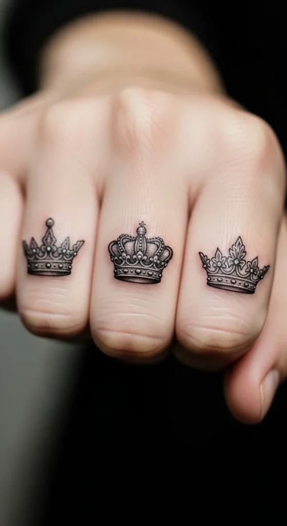 Tiny crowns across knuckles feel playful. Each finger holds one symbol. Easy DIY planning.