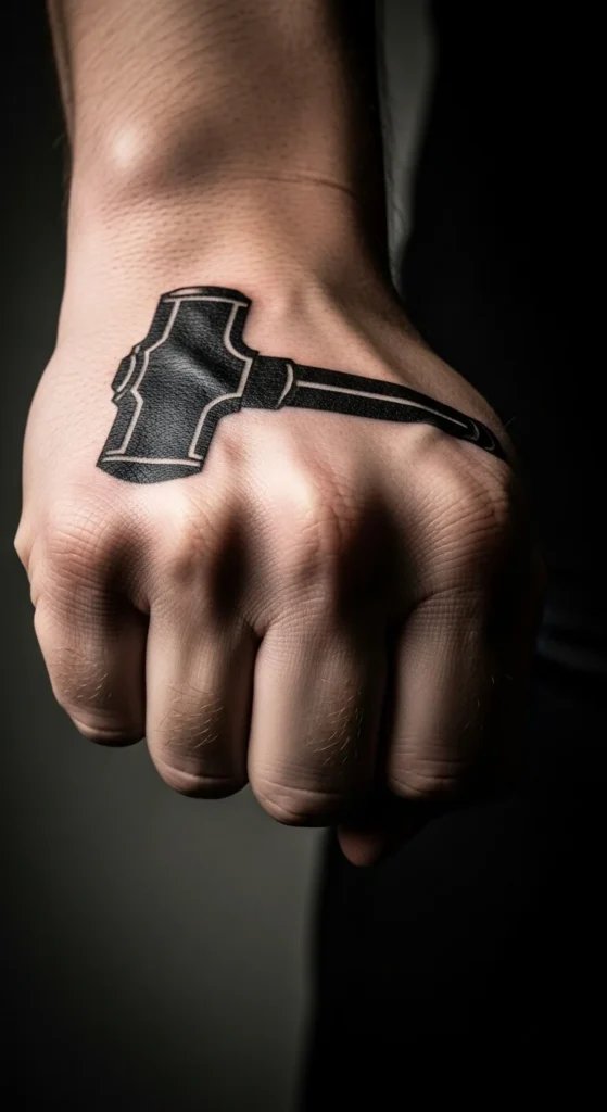Mjölnir fits well on the fist. Thick blackwork holds up longer and looks strong.