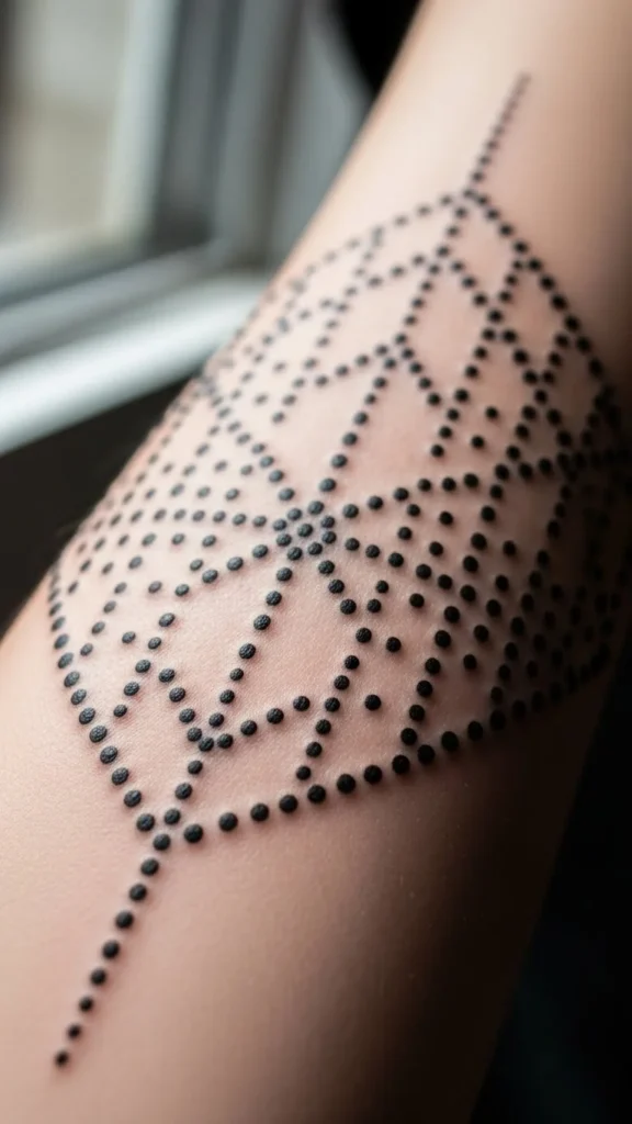 Dotwork tattoos are built dot by dot, not with solid lines or heavy shading. This gives them: