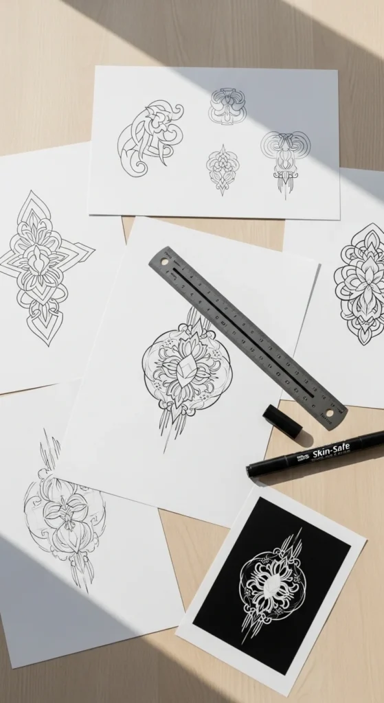 - Wrist: shorter, cleaner shapes (tiny symbols, simple florals)