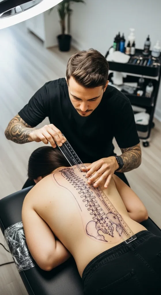 Most back fine line tattoos are done in multiple sessions. That’s normal and often better — it prevents overworking the skin.