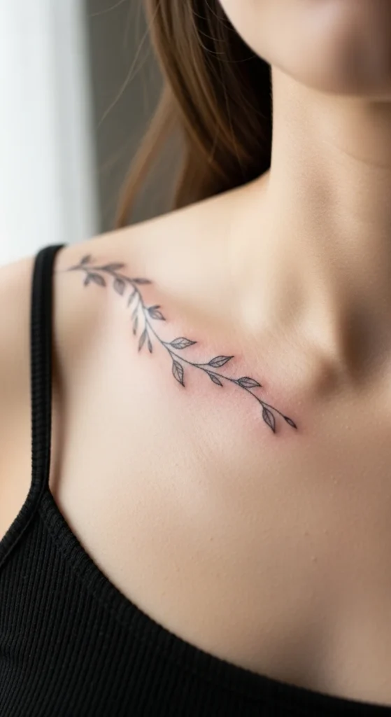 The collarbone area naturally creates a graceful “frame” for fine line work. That’s why designs here often feel: