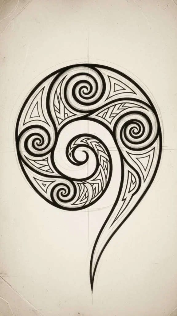 As a tattoo, symmetry matters. Keep each spiral evenly spaced. Open spirals reduce ink load and cost.