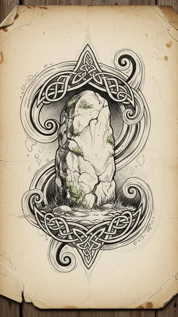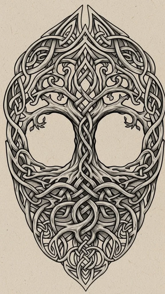 For tattoos, simpler versions reflect the original stone carvings. Thin lines and light knot accents keep the symbol grounded.