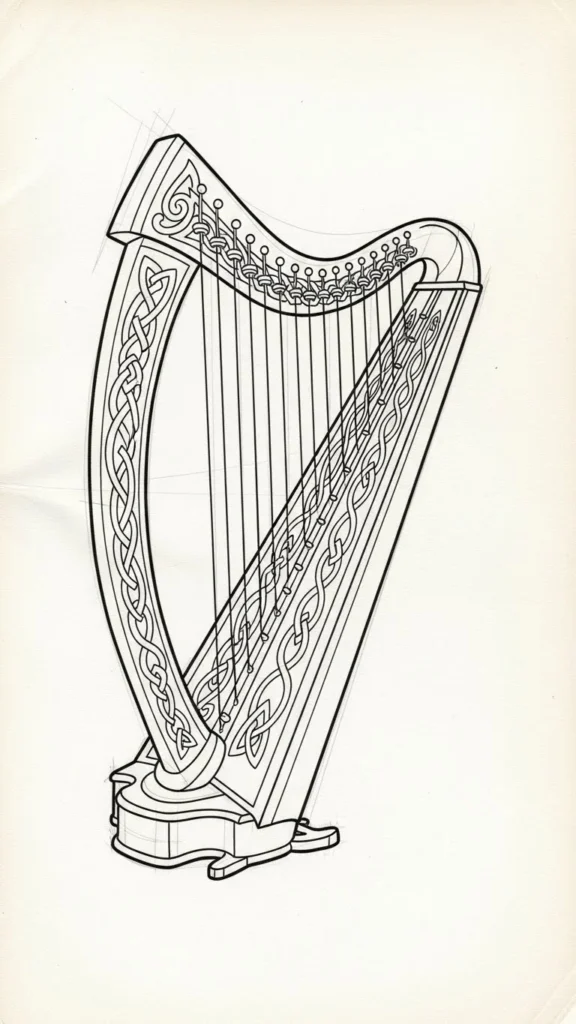 Outline harps suit tattooing best. Focus on smooth curves and even string spacing.