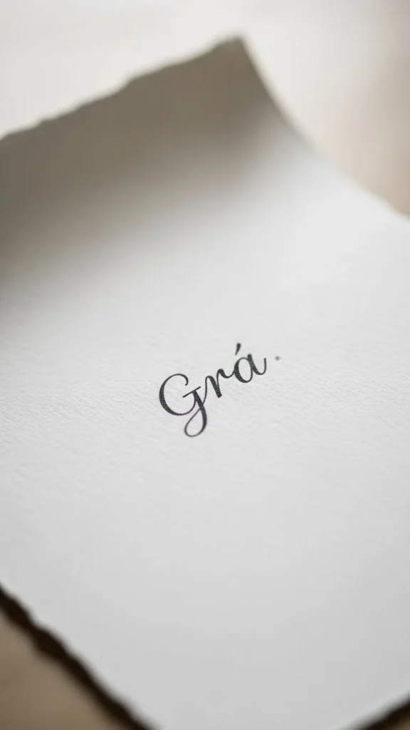 Grá translates to love. It is one of the most popular Irish word tattoos due to its simplicity and emotional weight.