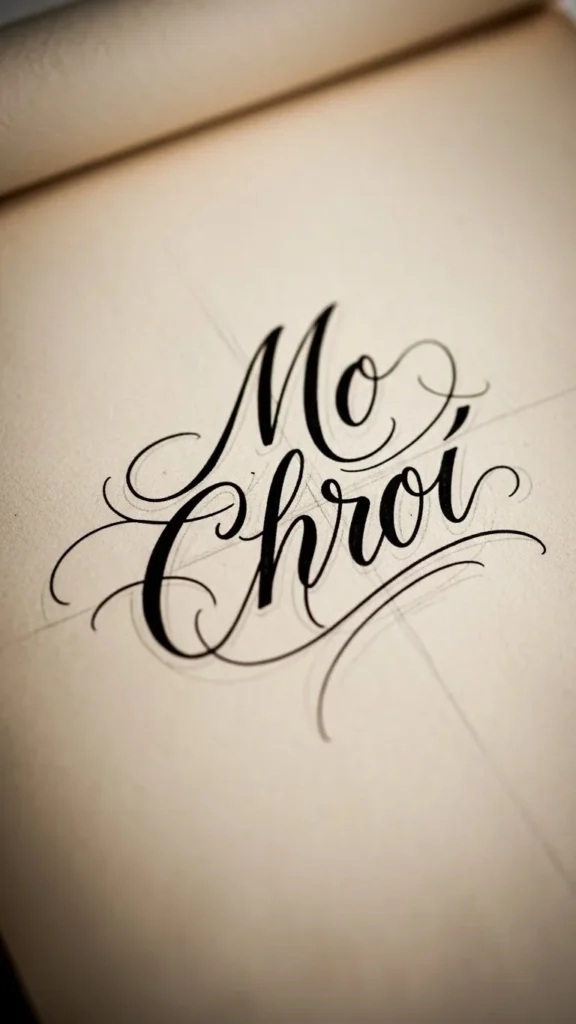 Mo Chroí means my heart. It suits tribute tattoos.
