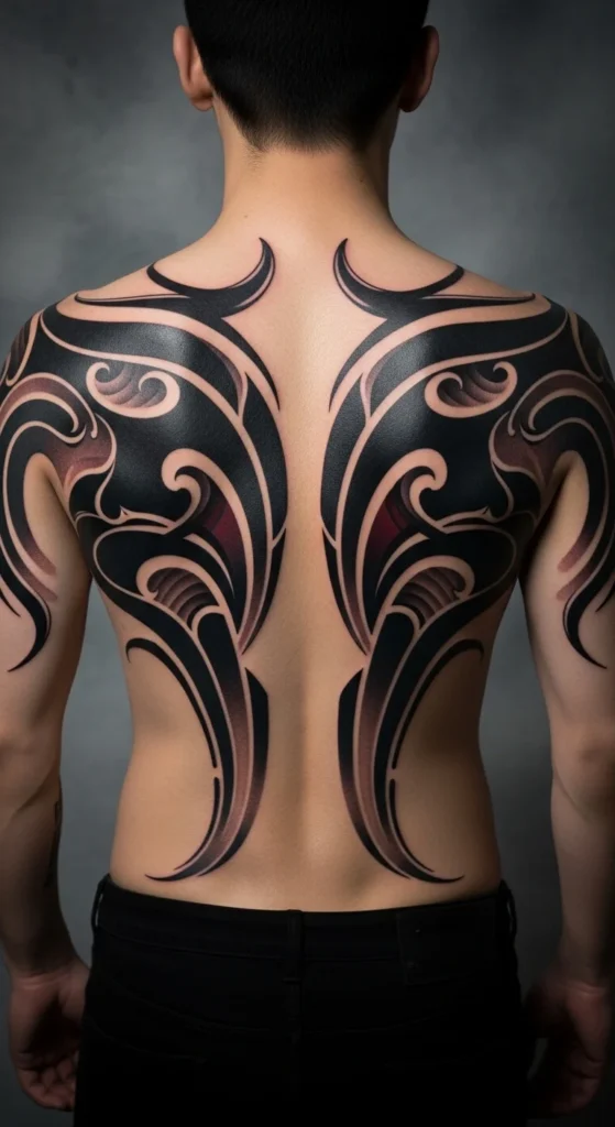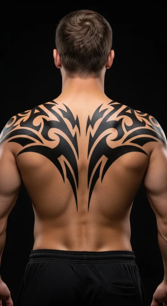 Tribal patterns are built for muscle flow. They can make your V-taper look stronger if the lines angle down toward your waist.