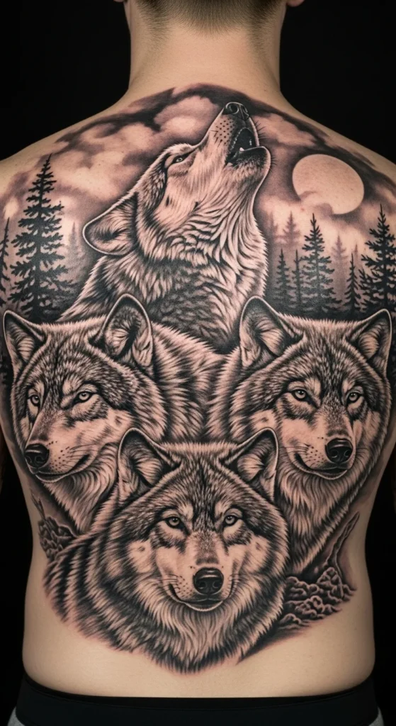 Wolves look aggressive and strong. A pack design spreads wide, which makes your upper back look bigger.