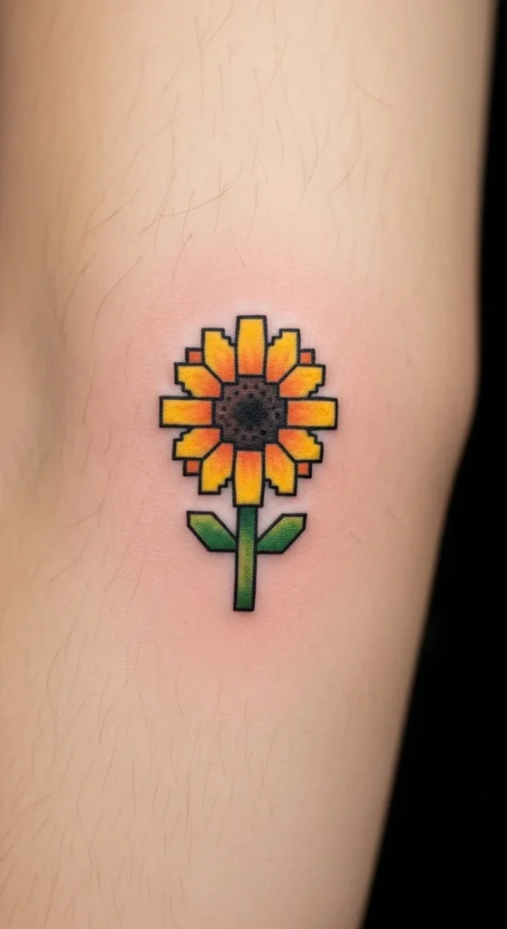 Pixel sunflowers bring a digital twist to floral ink.