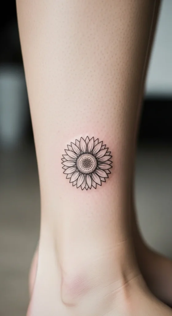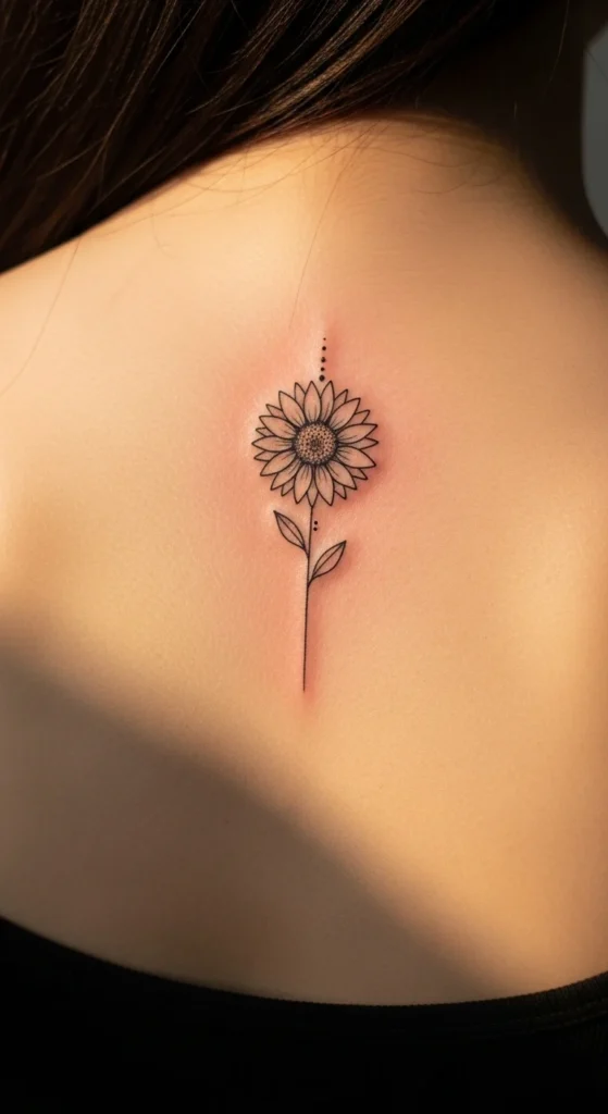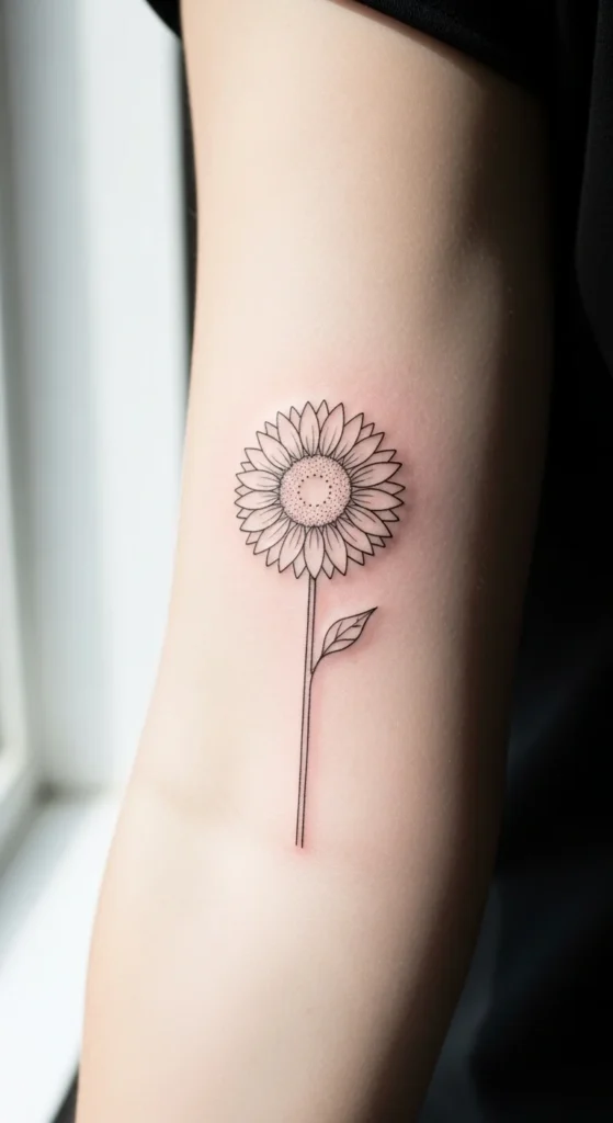 Simple sunflower tattoos are trending because they feel meaningful without being overwhelming. Clean lines, tiny sizes, and subtle shading make these designs easy to wear every day. Many people choose minimalist sunflowers for their link to happiness, growth, and quiet strength.