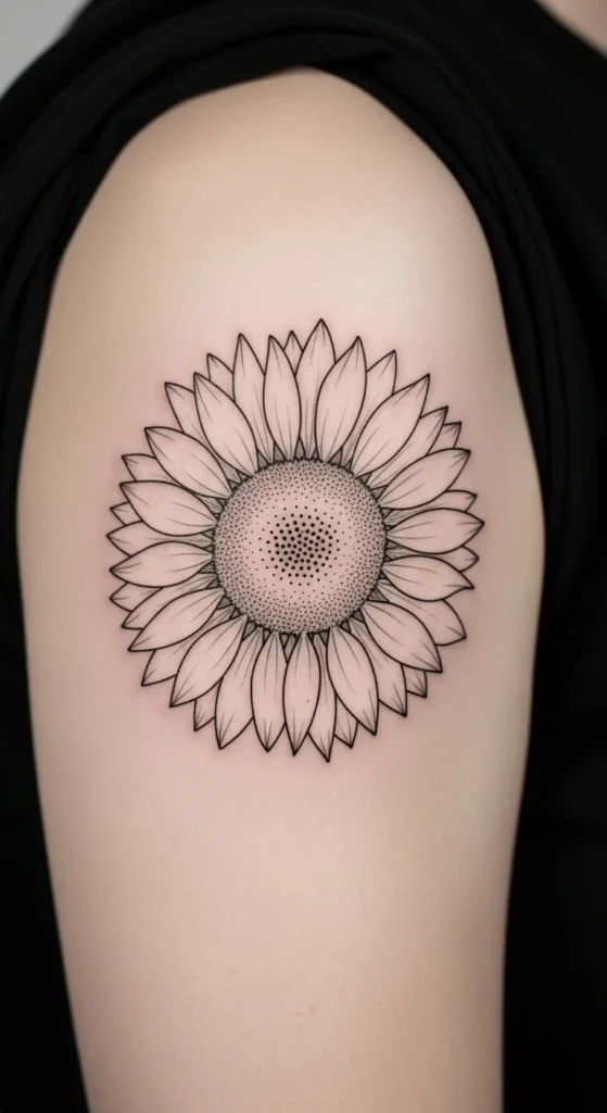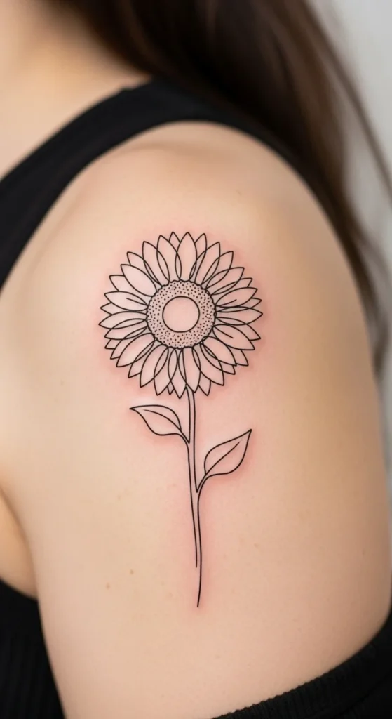 7. Shoulder Single-Line Sunflower