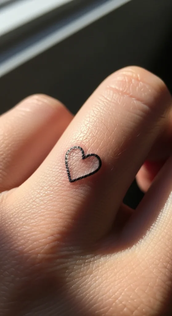 The tiny heart remains the most loved finger tattoo. It’s soft, meaningful, and instantly recognizable even at micro size.
