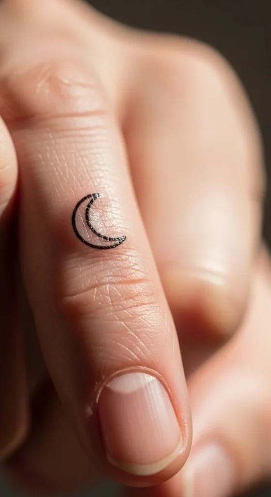 Crescent moons naturally fit the curve of a finger. That’s why they age better than many tiny shapes.