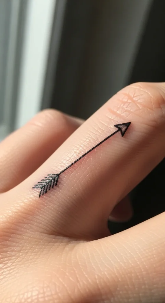 Arrow tattoos symbolize direction and forward motion. Their straight shape works perfectly in narrow finger space.