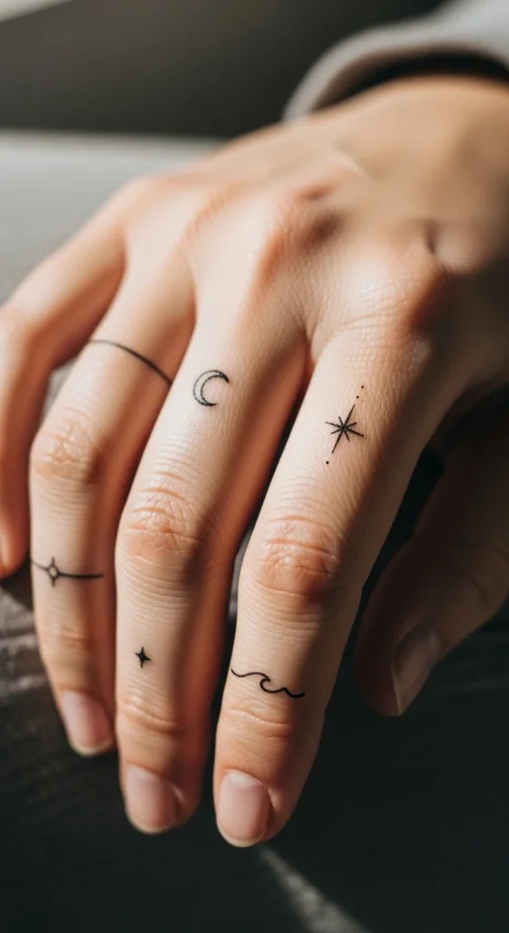 Tiny finger tattoos look best when the design stays simple, spaced, and intentional. The ideas above focus on shapes that remain delicate while still aging well on high-movement skin.