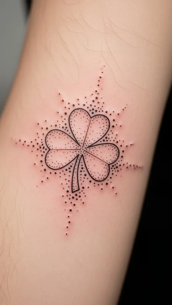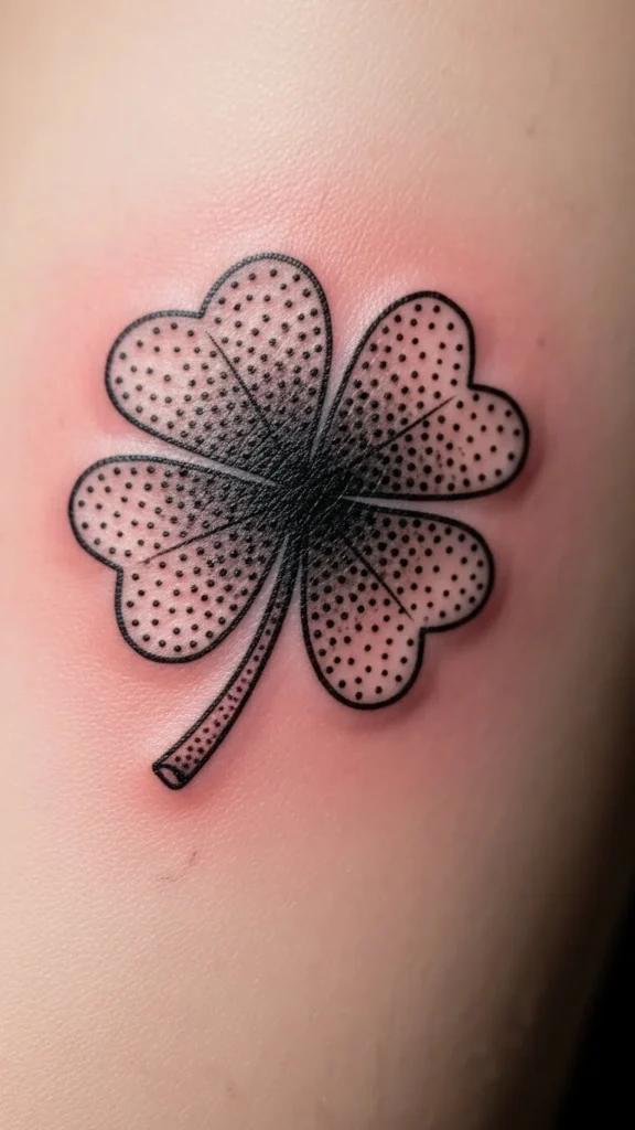 Dotwork clovers add texture without heavy shading. Flash versions usually keep dots sparse.