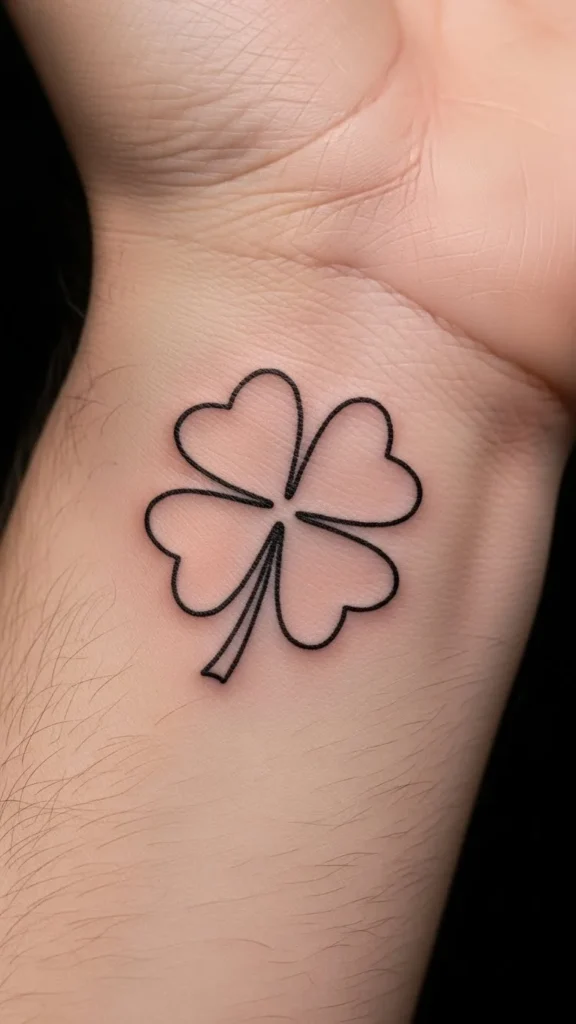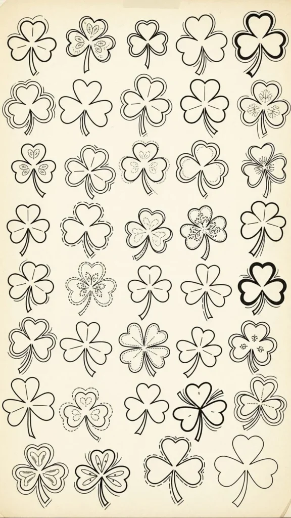 Four-leaf clovers symbolize luck. Outline-only versions keep things classic.