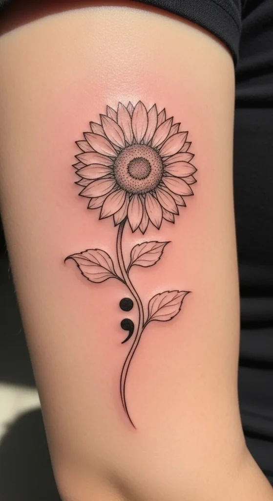 Combining a sunflower with a semicolon creates a powerful message of hope and perseverance.