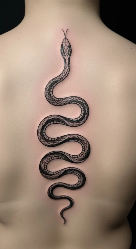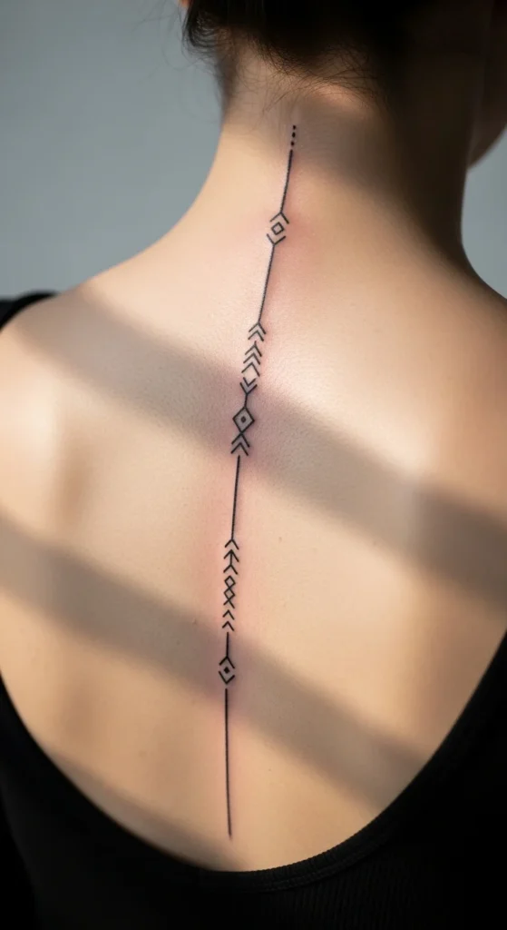 A rose vine climbing the spine feels soft and timeless. The line follows your natural center. That keeps the design clean and flattering.